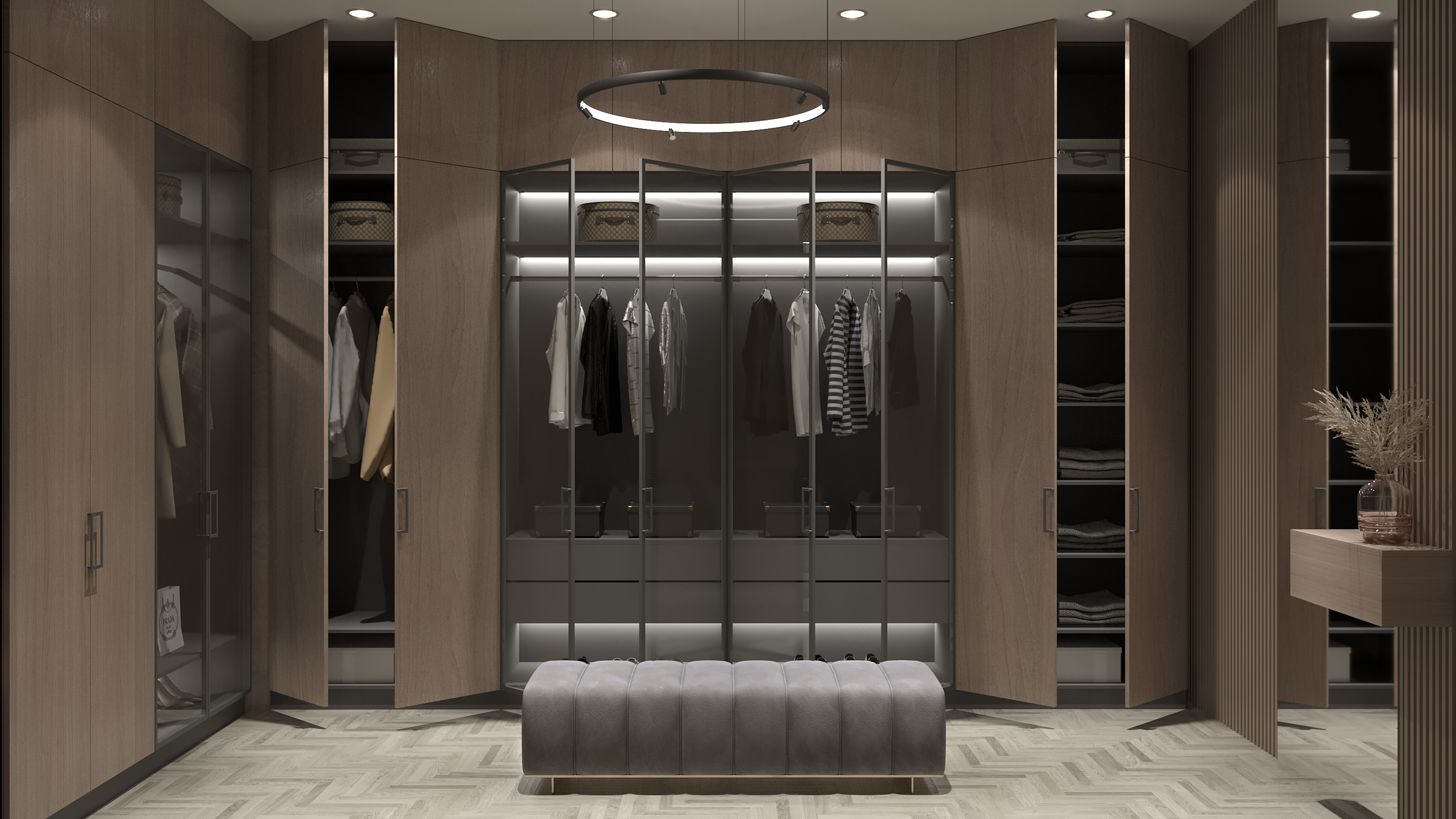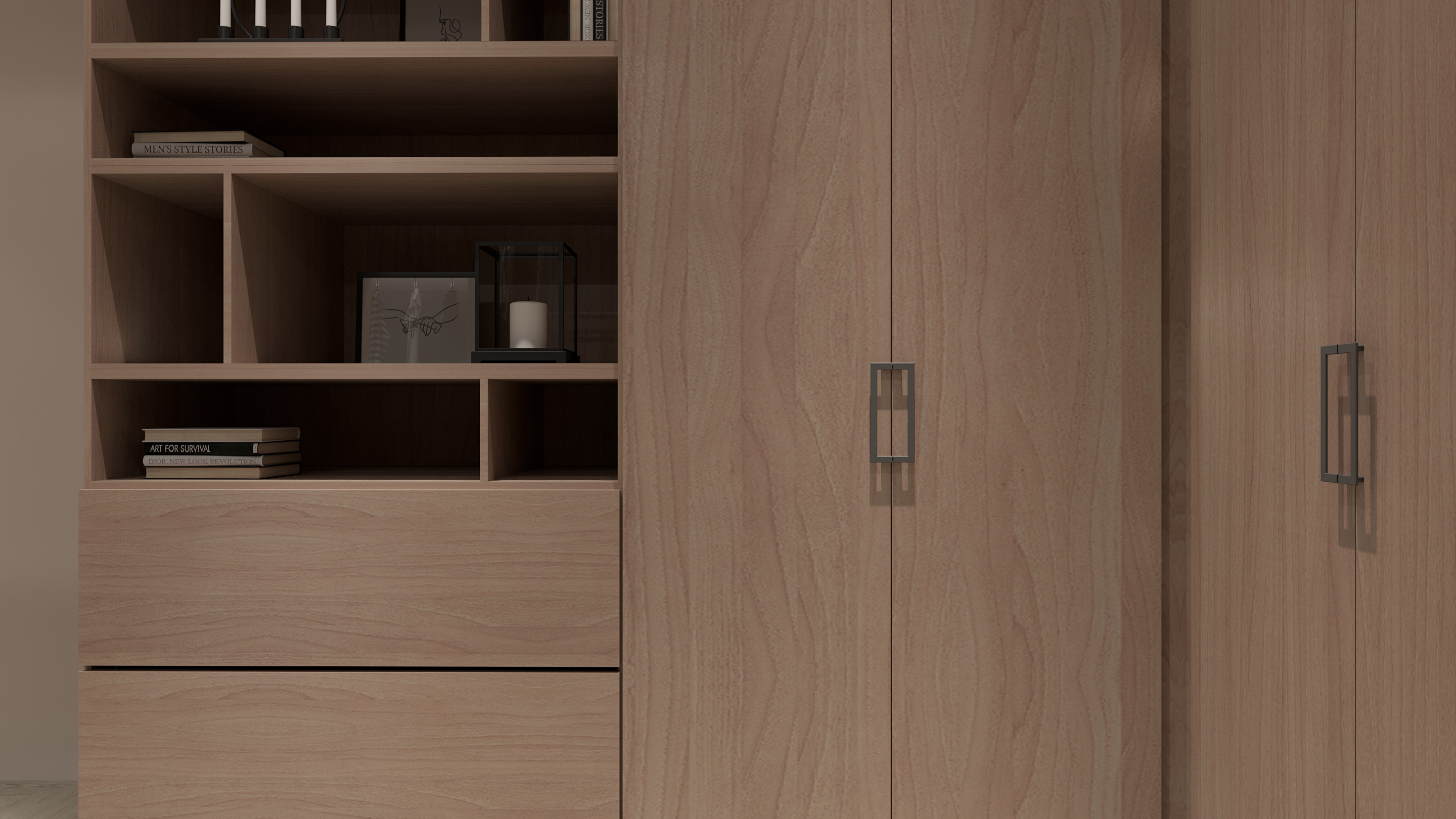 Фасады выполнены из МДФ толщиной 19 мм и покрыты натуральным шпоном различных пород дерева, таких как дуб, эбен, палисандр, эвкалипт и другие.