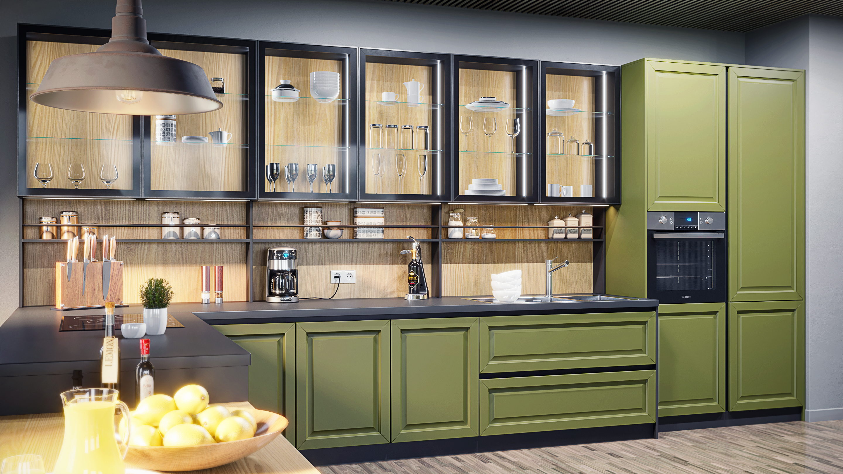 Модель Medea — это богатая и роскошная кухня в неоклассическом стиле. Она не даром названа в честь древнегреческой богини-волшебницы.