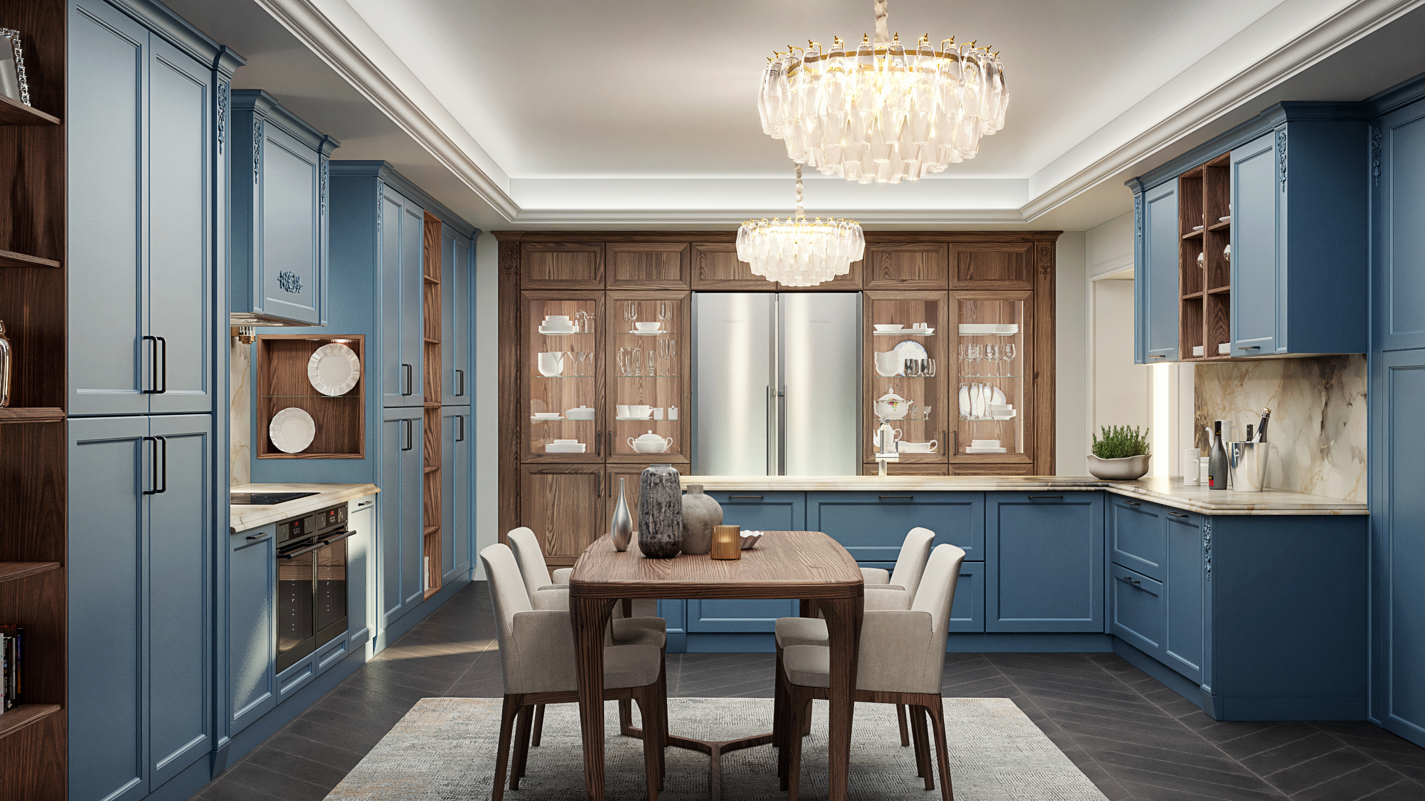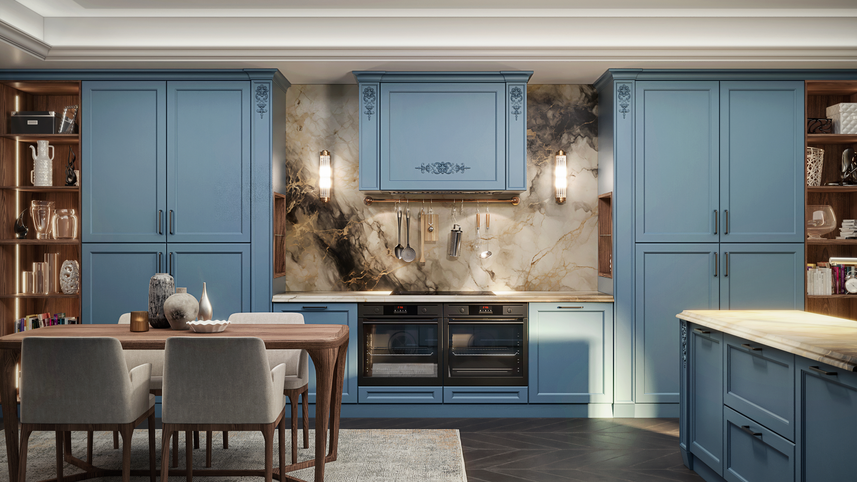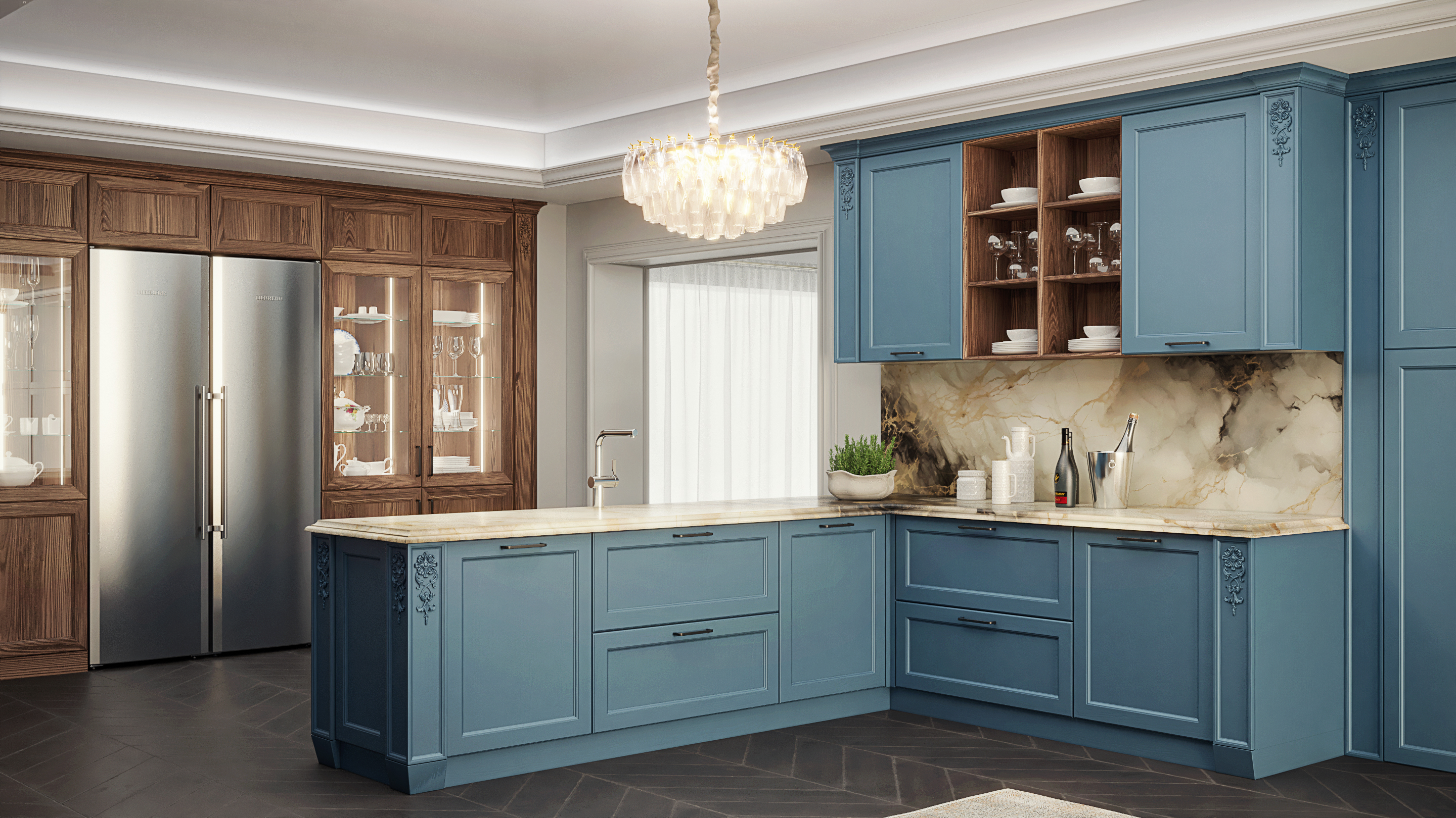 Solaria Plus выдержана в традиционном классическом стиле. Колонны и карнизы выполнены в стиле ампир, что делает кухню не только местом приема пищи, но и мастерской, где рождаются кулинарные шедевры.
